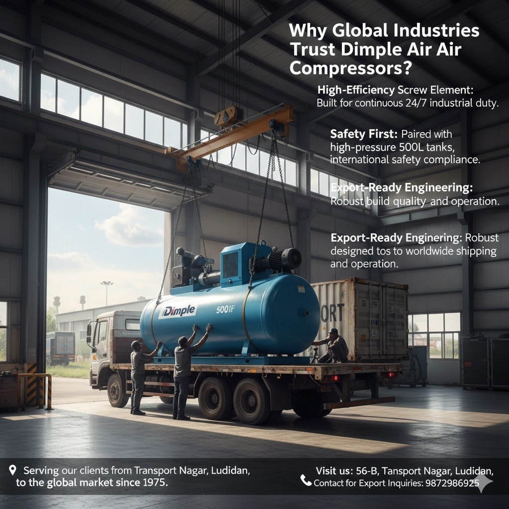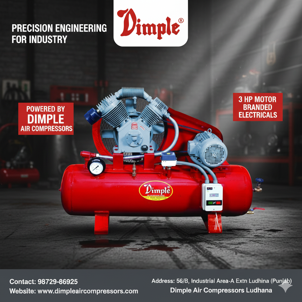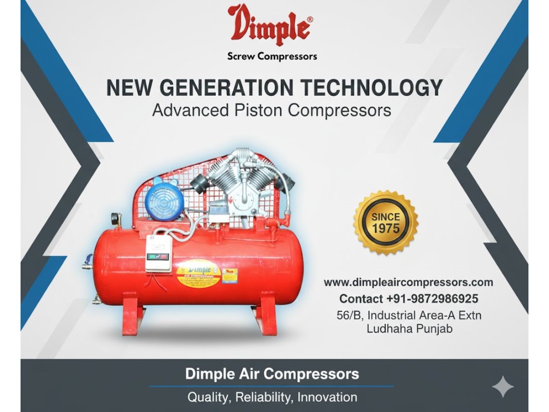 Dimple Air Compressors is a trusted name in Ludhiana, Punjab (INDIA) for industrial compressors, air compressors, premium screw air compressors, piston compressors, air dryers, line filters, air compressor oils and complete pneumatic solutions. With 50+ years of expertise, we provide reliable sales, service, AMC, repair services and on-site support for all compressor brands. Our engineering excellence, quick service response, and durable products ensure maximum performance and zero downtime for your industry. We deliver reliable products, expert service, and genuine spare parts for all compressor brands. With strong industry experience and trusted performance. Choose Dimple Air Compressors for quality, trust, and long-lasting productivity.